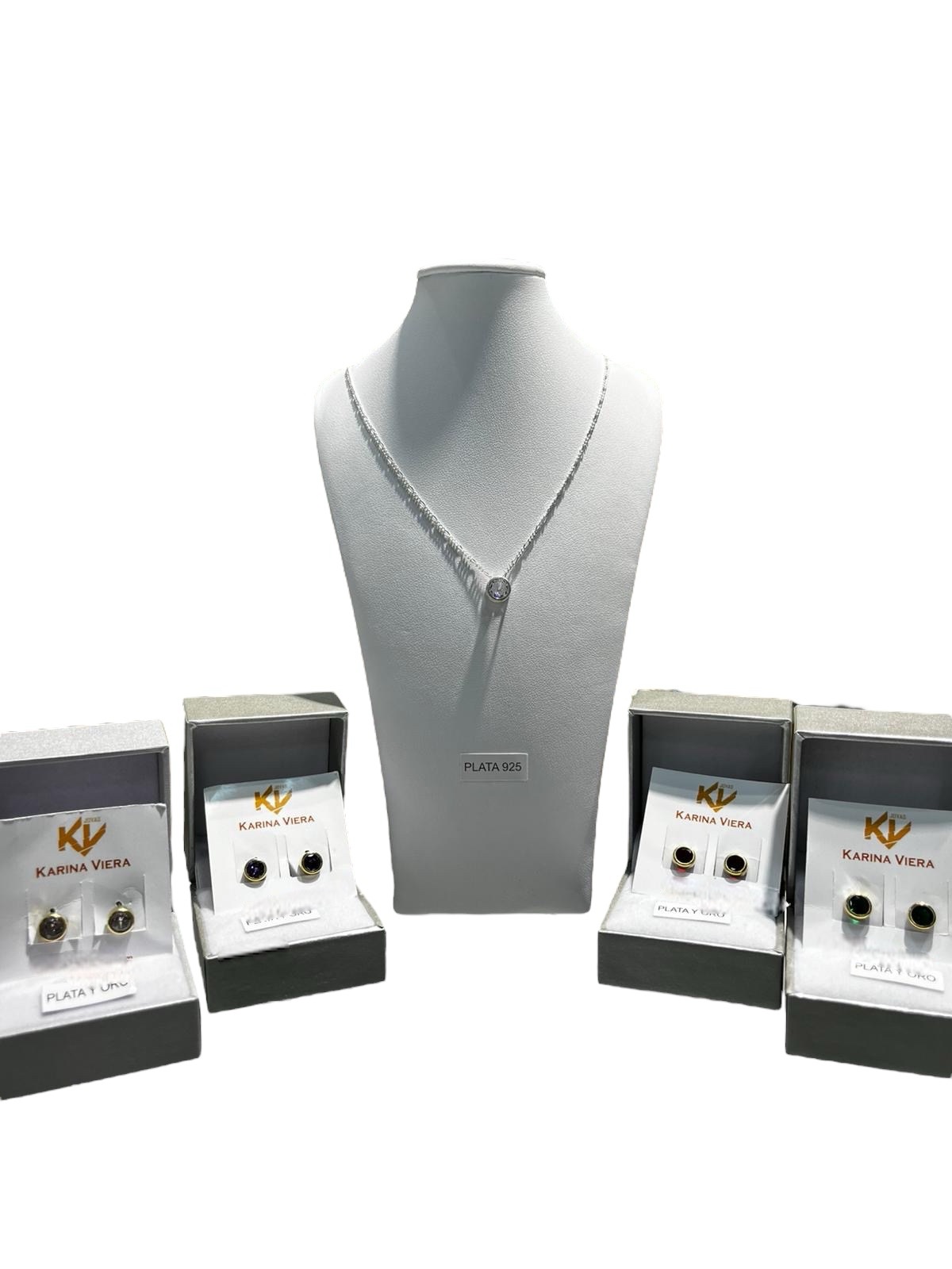 Combo Promo: Cadena + Dije Punto de Luz + Caravanas Plata y Oro con Piedra de Color
