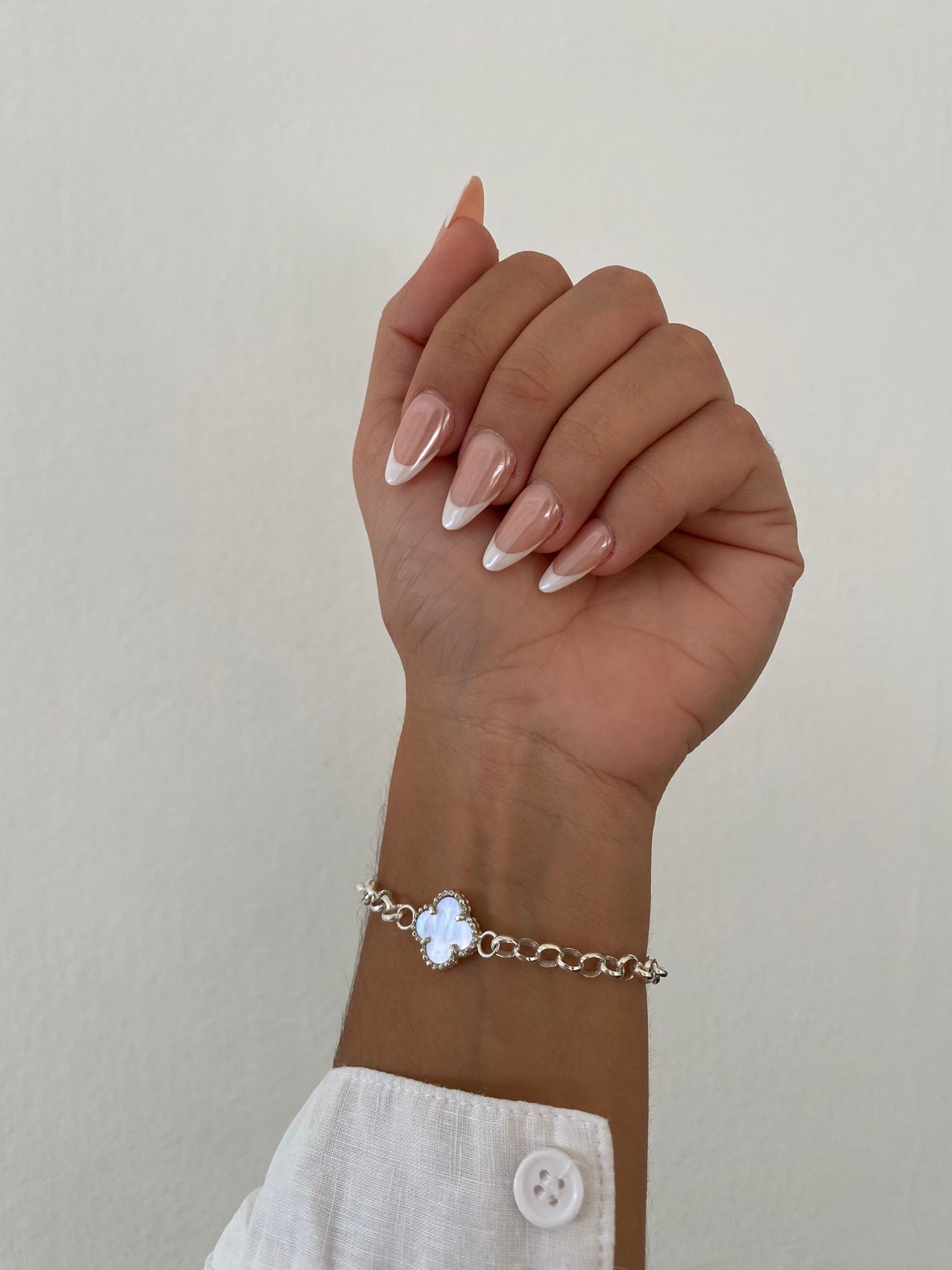 Pulsera de rolos modelo trebol en nacar o piedra negra plata 925 TENDENCIA